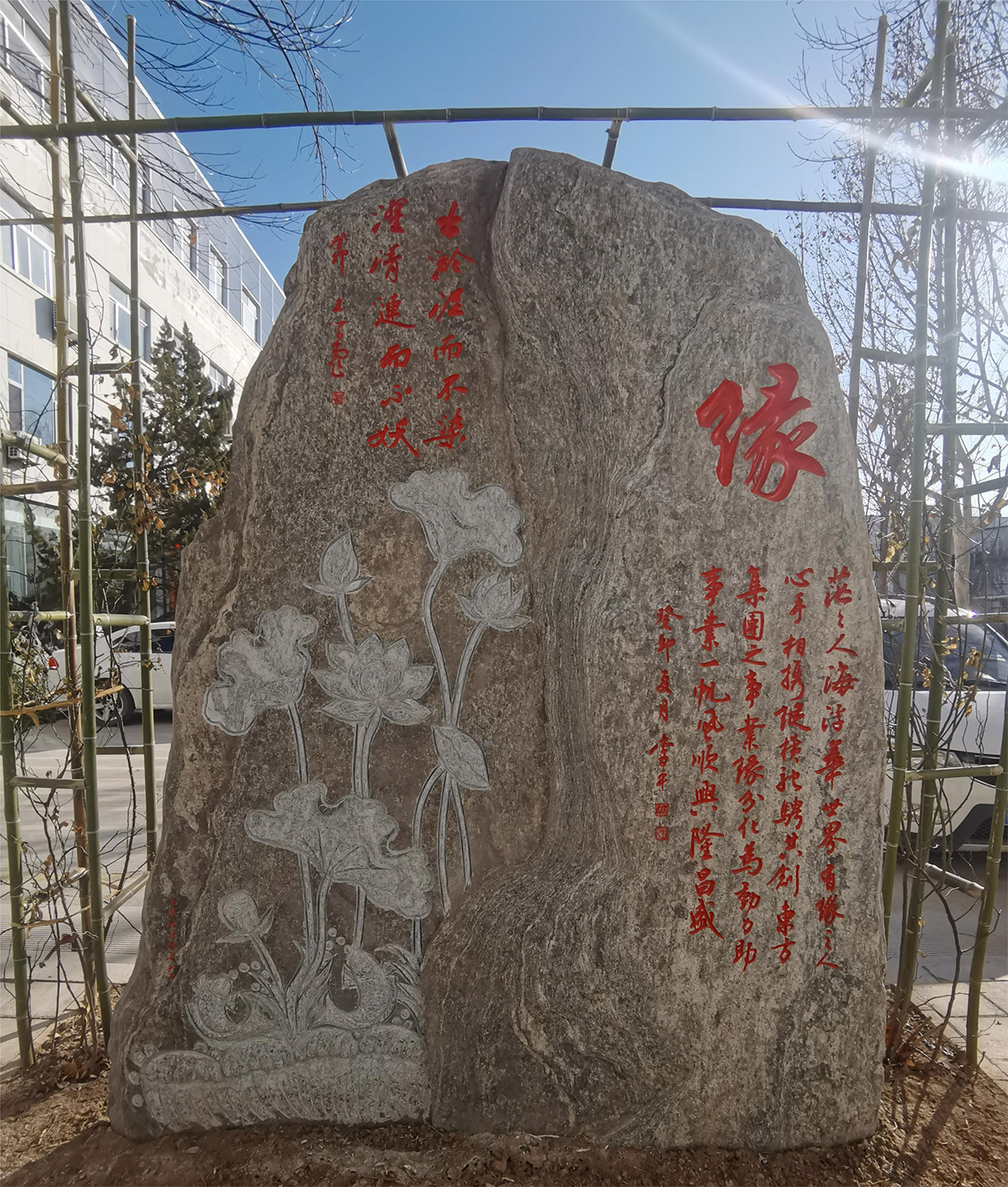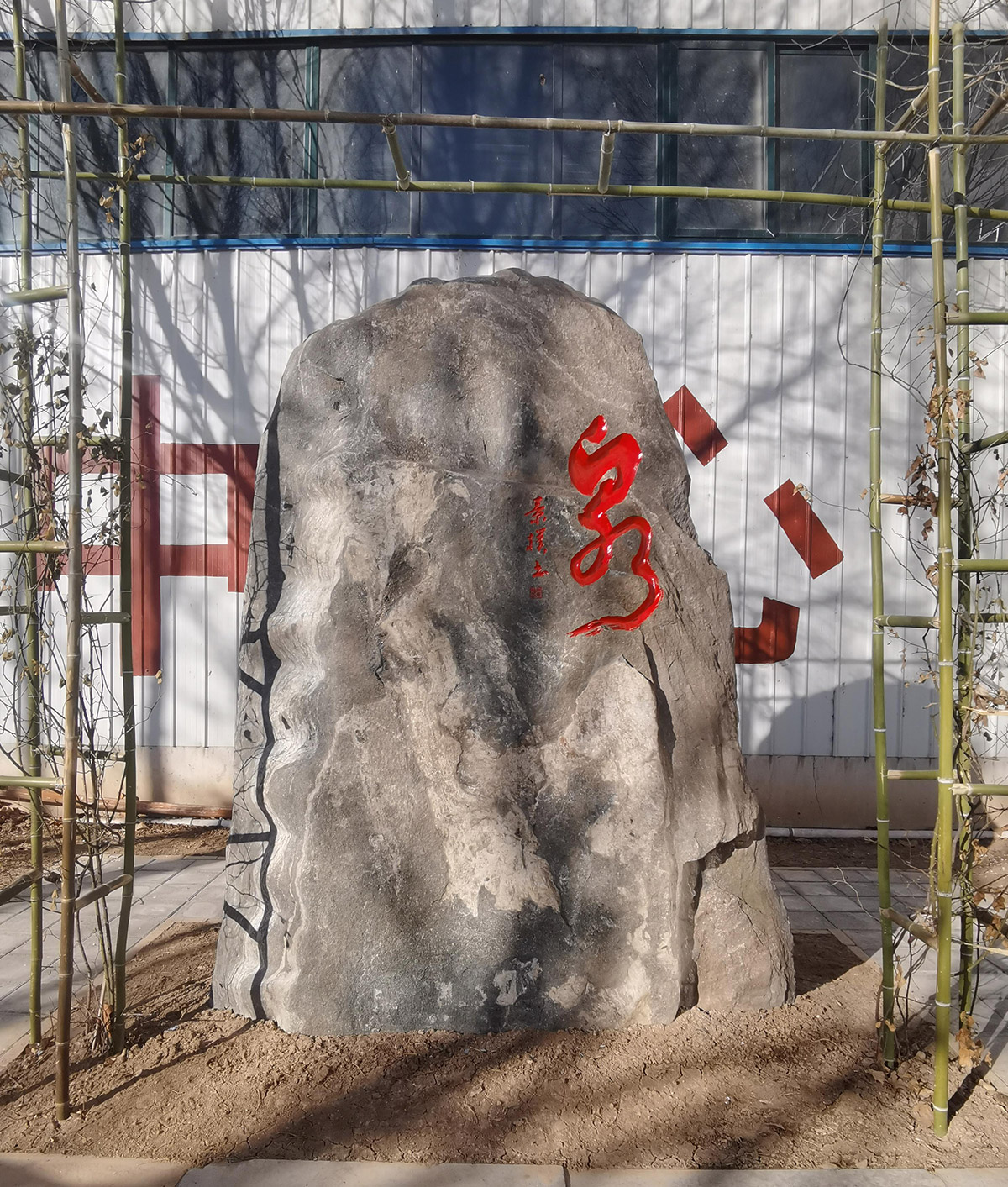 2023年12月底,此塊泰山石落座在山東東正鋼構(gòu)有限公司院內(nèi)。正面題字為:泉。泉字含義為泉水、水源、源泉、源頭活水之義,寓指充滿活力、生機(jī)盎然、充滿希望,象征著東方建業(yè)(集團(tuán))公司生生不息、朝氣蓬勃之意。